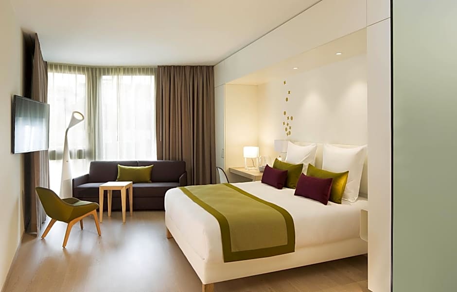 features a variety of room options, including non-smoking and hypoallergenic rooms. Each room is equipped with modern facilities like a private bathroom, flat-screen TV, and kitchenette. Guests can also enjoy the hotel's terrace and bar, making it a perfect spot to unwind after a day of exploring Basel.